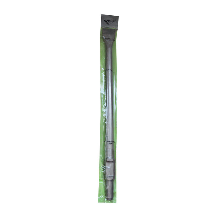 - قلم چکش تخریب ولف مئل نوک تخت - طول : 600 میلی متر - دارای نوک تیز به قطر 30x50میلی متر - مناسب برای تراش یا تخریب بتن ، چوب ، آهن و سنگ و ... - قابل اتصال به دریل های چکشی - کیفیت بالا